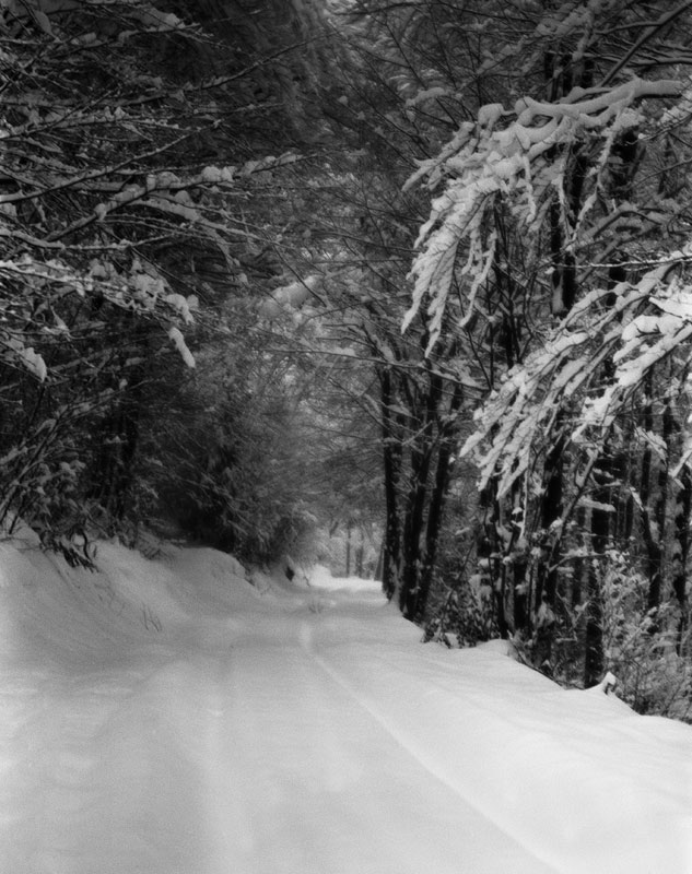 It's incredible, but last week I developed the last batch of film. It's satisfying to know, that I now can see everything I photograph for the last year. I still need some scanning to do to be able to find candidates for Pd printing that I plan for winter months. Never the less. Between films in last batch I find this photo of deep snow in the forest that I took with two lenses: Hermagis Eidocsope #3 and home made Puyo&Pulligny adjustable landscape lens. This later one is incredibly difficult to use. Firstly it's very, very soft and secondly it's soft focus effect relies on chromatic aberration and therefore visual and chemical focus are not on the same spot and compensation although I have some information, is still wild guess. Both photos were taken with objectives wide open. How much do I succeed in doing this, it's you do decide. I'm quite pleased with both photos, and can't wait to find time to print them.