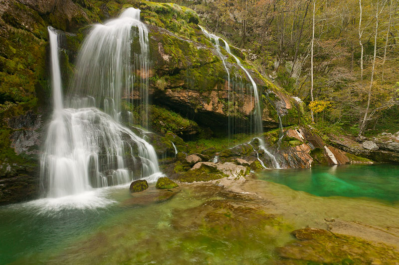Weather was very cloudy through the day, so we decided that we'll go to Soča valley. Nice toquise water and trees in autumn colour ocupied us through the day. Near Bovec we found another good looking waterfall. Weather forecast for tomorrow looks the same, so we'll spend it potographing reflections and waterfalls.